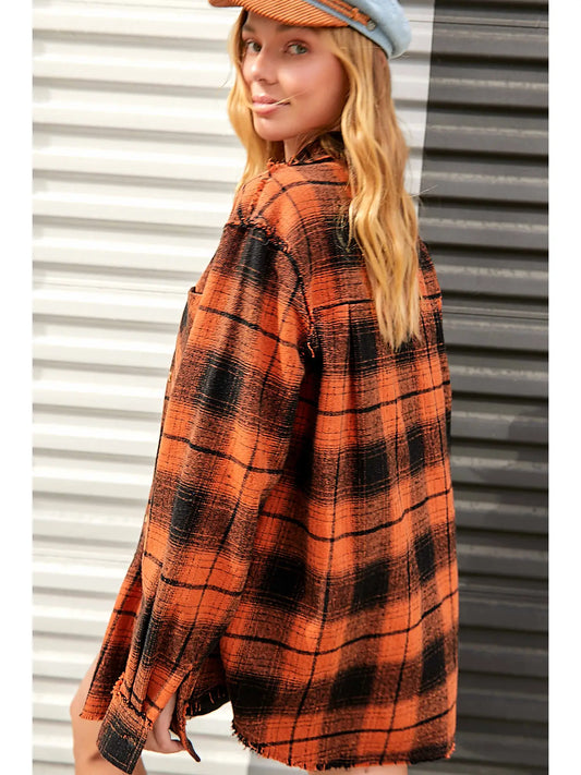 Mineral Washed Button Down Soft Fabric Plaid Shirts