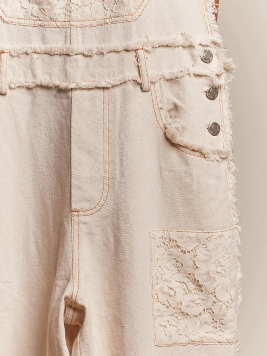 Distressed Pocketed Wide Leg Capri Denim Overall