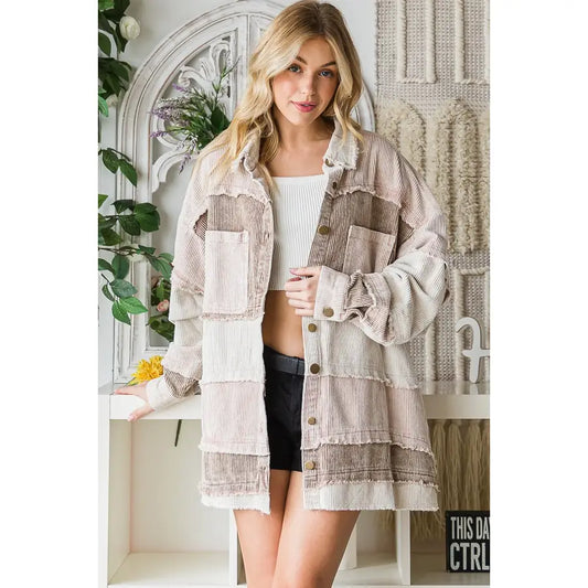 Corduroy Snap Buttons Empire Waist Bracelet Sleeve Dress
