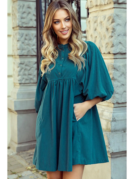 Corduroy Snap Buttons Empire Waist Bracelet Sleeve Dress